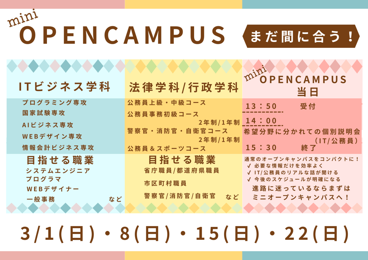高校3年生・高校既卒者限定 ミニオープンキャンパス開催!